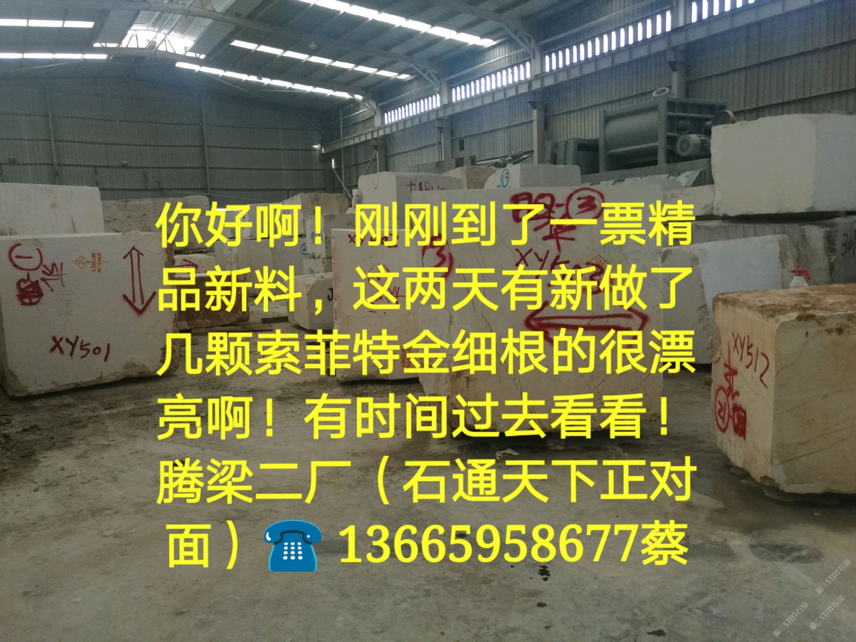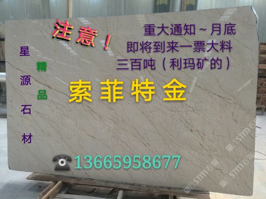 星源石材主營(yíng):索菲特金(細(xì)根白底的).利瑪?shù)V,帝皇金.愛(ài)馬仕灰,香奈金大板及荒料,廠地址:福建省南安市水頭鎮(zhèn)濱海工業(yè)區(qū)立信市場(chǎng)C1區(qū)星源石材!歡迎廣大朋友來(lái)電?? 13665958677蔡