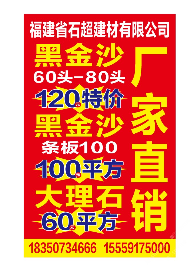 福建石超石業(yè),經(jīng)營進口黑金沙,英國棕,巴西金鉆,奧特曼,白玉蘭,自有半成品加工廠、成品加工廠。承接黑金沙條板、成品、水景、地鋪、異形等工程單加工,歡迎您的光臨!15559175000、18350734666石總