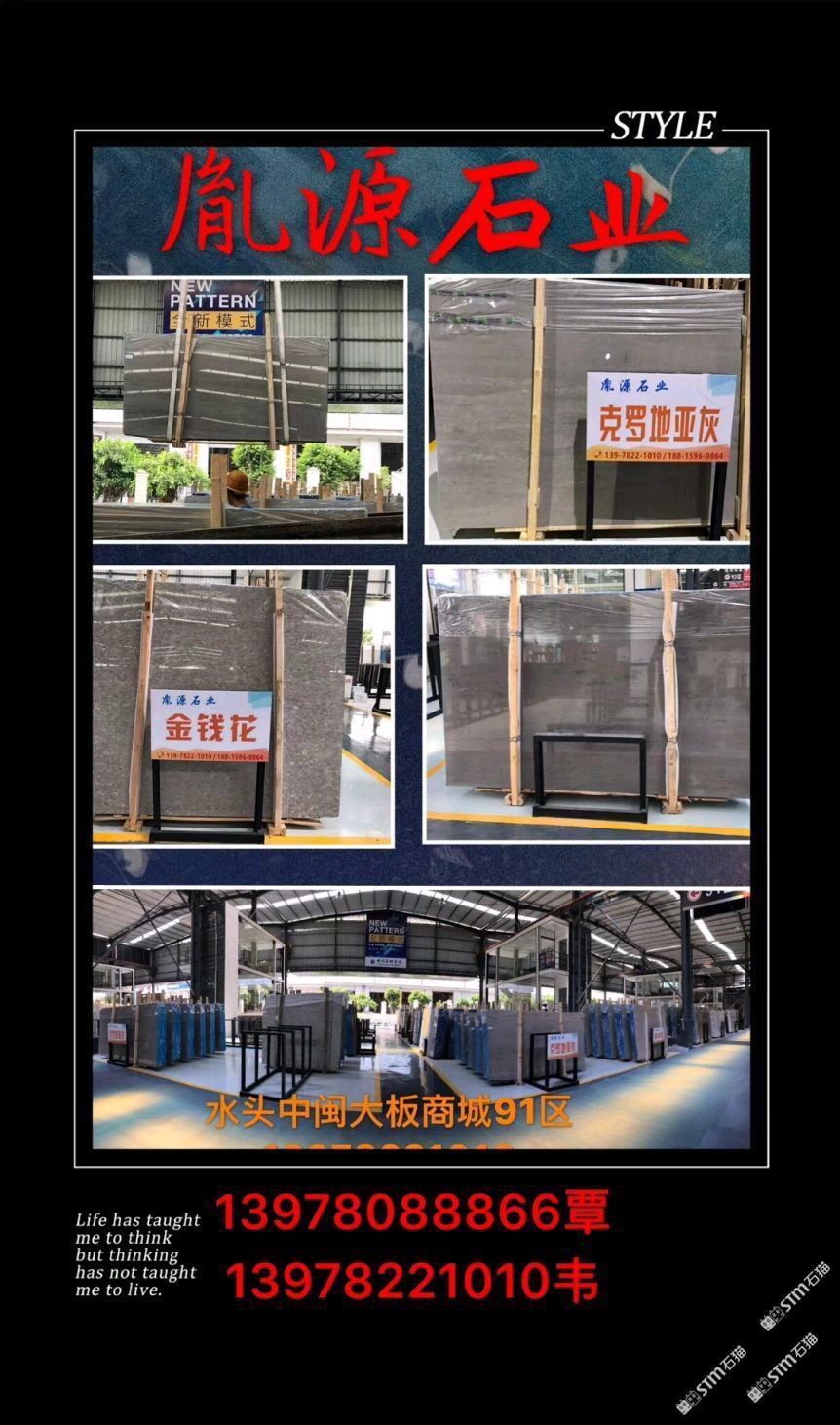 廣西胤源石材有限公司主營:灰姑娘.金錢花.板材荒料,自有礦山,規(guī)格板.工程板.樓梯板,水頭鎮(zhèn)中閩市場91區(qū)。