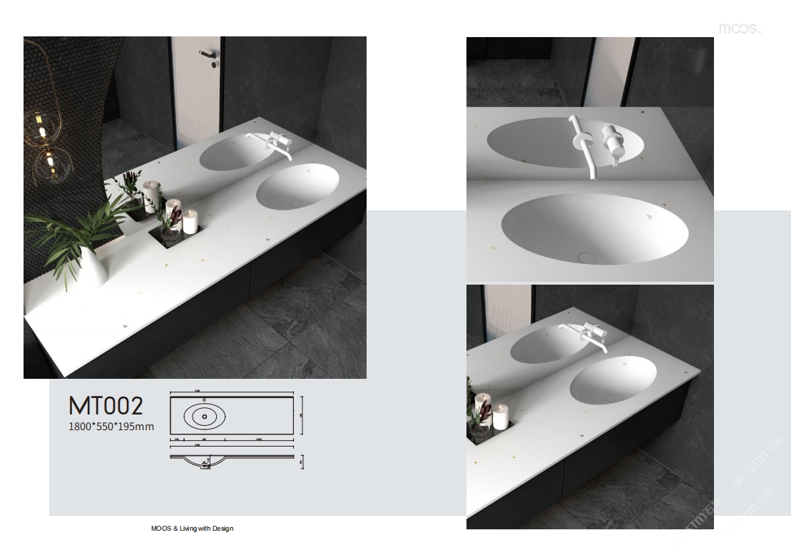 「MOOS魔石衛(wèi)浴」無機水磨石一體化臺盆設計