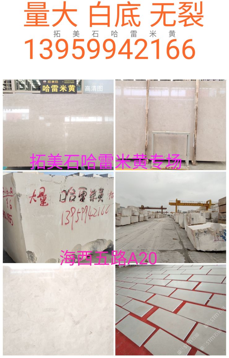發(fā)布信息: 拓美石??<哈雷米黃專場> ??新沉香石灰石萊姆石 新老礦不同價位。礦山直銷,每月到正礦A級荒料,常年備貨2000噸↑,無裂,花色均勻,可訂切不同厚度。請放心接單 ??海西市場 ①門進 海西五路A20 拓美石13959942166龐