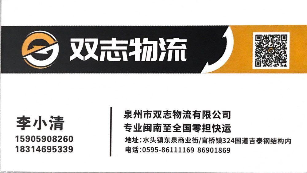 水頭【雙志物流】十六年專注零擔(dān)整車運輸,現(xiàn)已加盟全國快運5強順豐集團旗下順心平臺,網(wǎng)絡(luò)覆蓋全國,網(wǎng)上實時跟蹤查件,歡迎廣大客戶前來監(jiān)督指導(dǎo)。地址:福建省泉州市水頭鎮(zhèn)東泉商業(yè)街/水頭樸山村洋美茂250-3號/官橋鎮(zhèn)324國道田墘120-5號雙志物流官橋分公司。?全國統(tǒng)一服務(wù)熱線:0595-86111169??手機微信同號:13505987769/15905908260李(女士)#水頭十六年雙志物流專業(yè)閩南至全國整車零擔(dān)、快運倉儲配送!#??