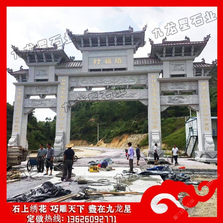 發(fā)布信息: 農村村口牌坊 石牌坊生產廠家——九龍星石業(yè)。 農村村口牌坊制作內容豐富,雕刻精美,每一座石牌坊都瑰麗華美,都是經過石牌坊雕刻廠家精雕細刻加工而成的。 從農村村口牌坊設計來看,規(guī)格主要可以分為單門牌坊、三門牌坊、五門牌坊等,在樣式上可以考慮沖天式牌坊或者不出頭式牌坊。此外石牌坊本身的雕刻圖案選擇也非常多,根據當地的風土人情以及文化特色等,在牌坊的設計上都會有很大的不同,考慮村莊石牌坊多少錢,也會考慮到牌坊本身的工藝設計以及雕刻的精細度情況,做工越是精致牌坊的價格越高,做工要是普通的話相對來說也就不需要那么多錢。