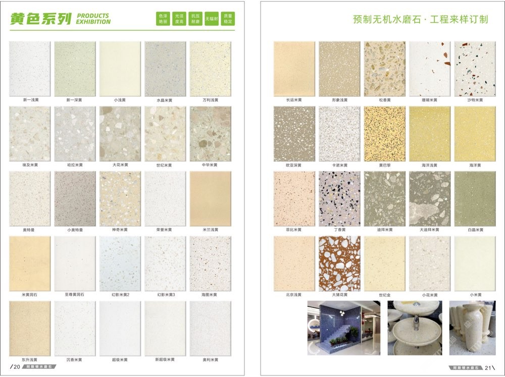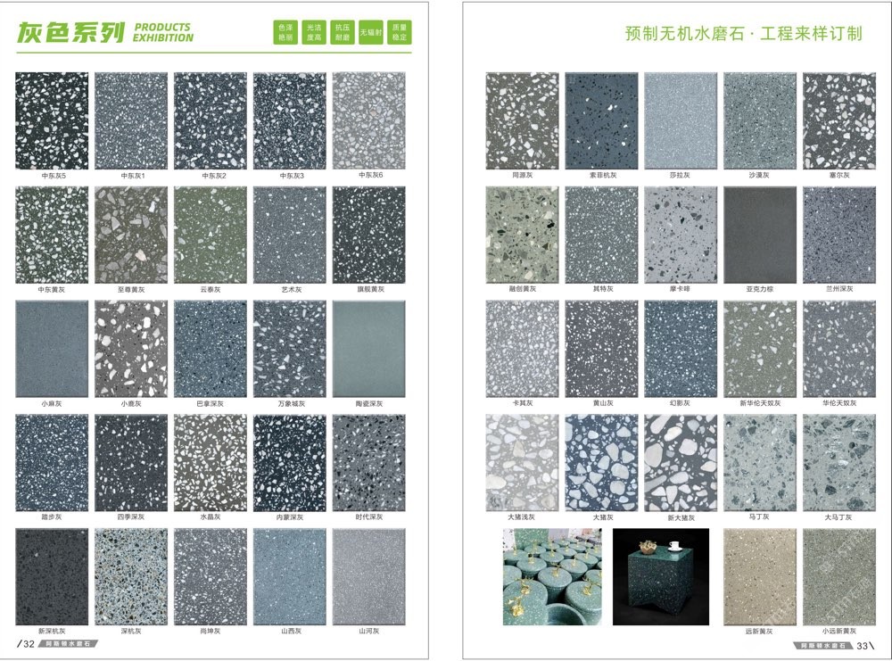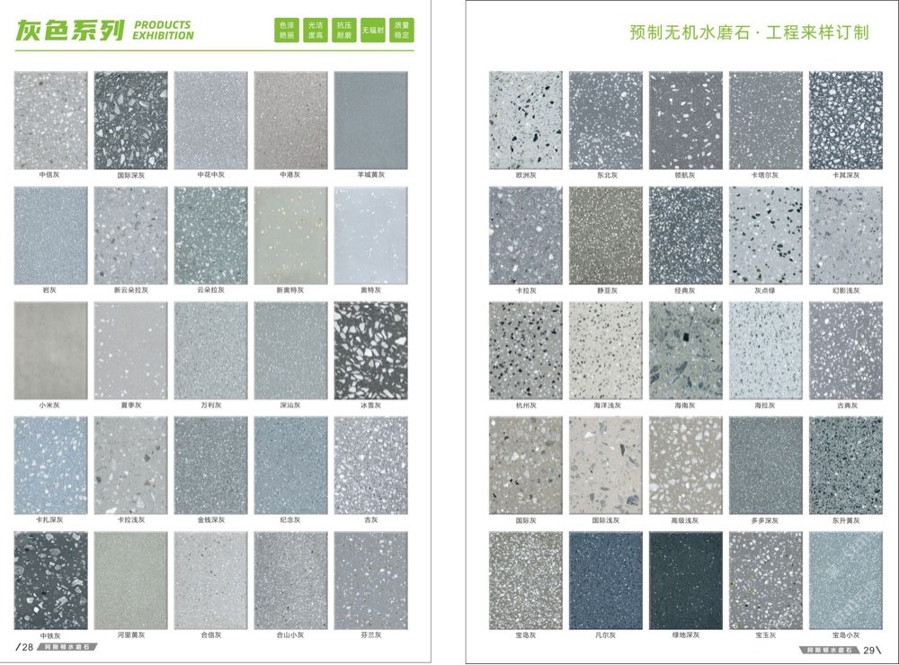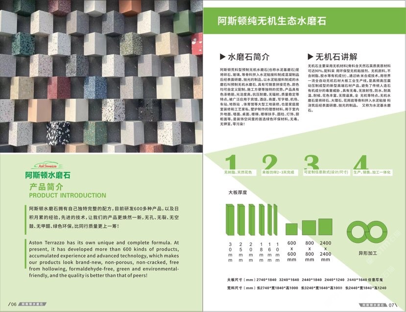 發(fā)布信息: #阿斯頓水磨石 新版畫冊預告,喜歡嗎 純無機水磨石,專業(yè),品質保證! ① 無樹脂、天然花色 ② 可定制任意款式(設計/尺寸) ③ 來板仿樣2~3天完成 ④ 生產、銷售、加工一體化