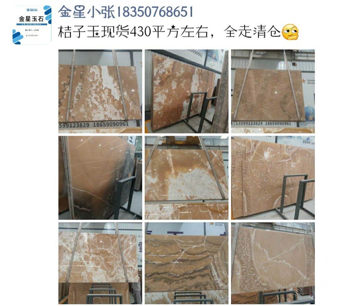 發(fā)布信息: 好消息!好消息!好消息! 由于產(chǎn)品調(diào)整:部分玉石咖啡玉,紅寶石,藍(lán)玉,桔子玉,清倉(cāng)處理價(jià)?。?!需要的趕緊行動(dòng)!聯(lián)系電話:18350768651~ 鵬翔石材城大道H7金星玉石