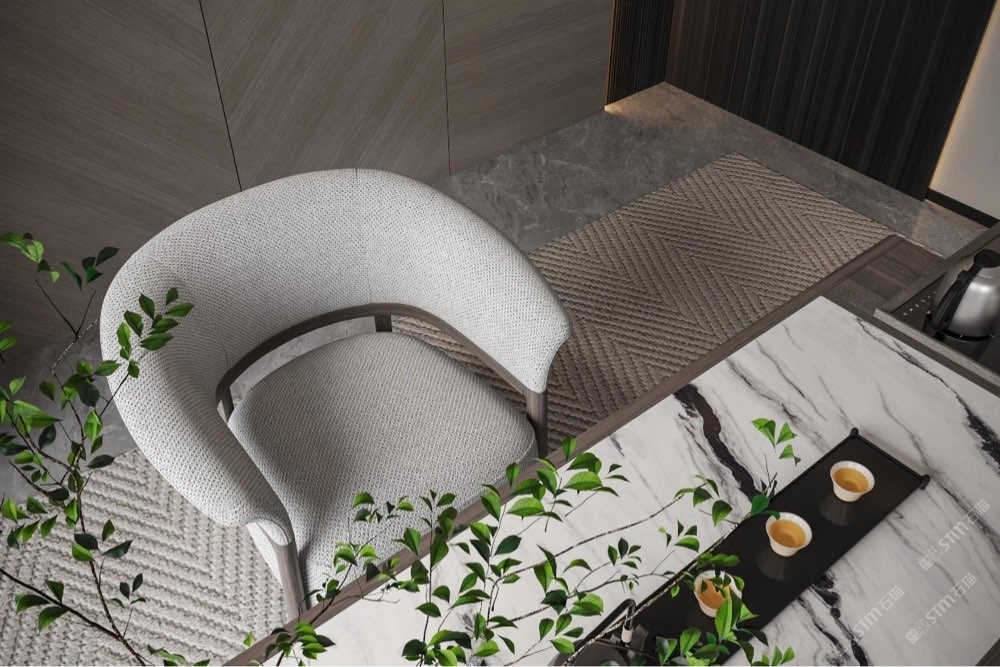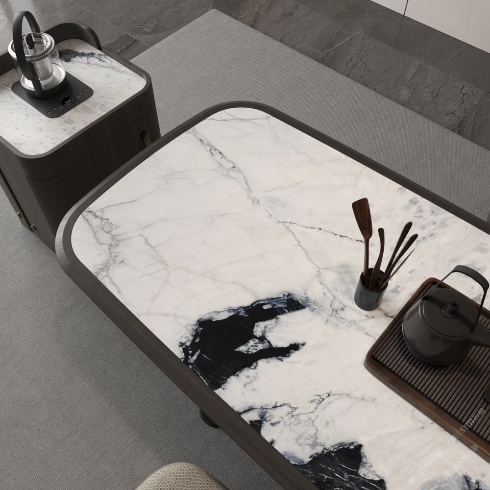 此時(shí),庫諾米大理石的冰涼觸感, 與茶水的溫?zé)嵝纬甚r明對(duì)比, 讓人在飲茶之時(shí),也能感受別樣的樂趣。