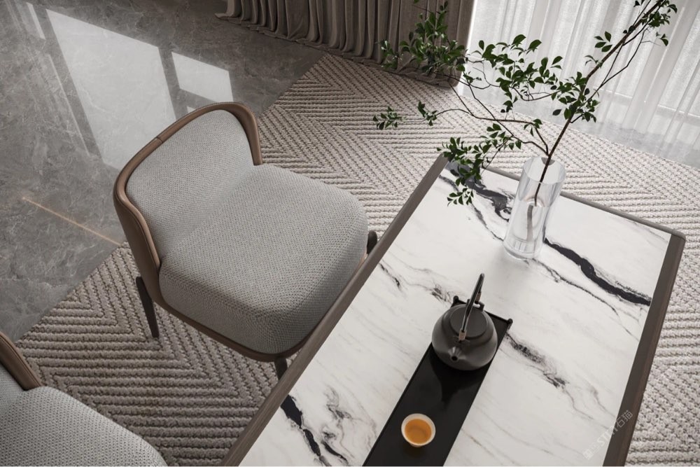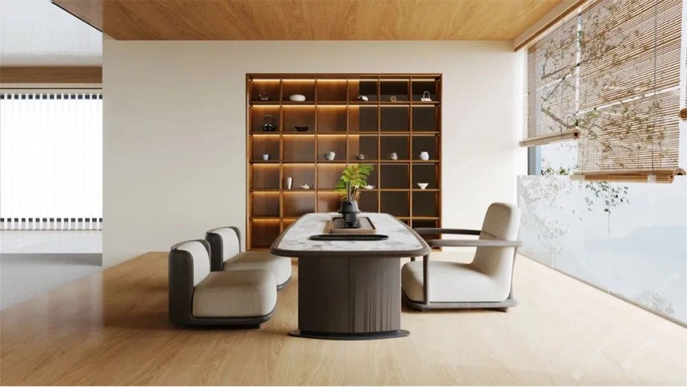當(dāng)茶桌整個(gè)臺(tái)面都以庫諾米為主時(shí), 廣闊的留白,黑色的線條自由地舞動(dòng), 如同賦予思維以無垠的天空, 任由想象力自由馳騁,且不失雅致與細(xì)膩。 空間呈現(xiàn)剔透貴氣質(zhì)感,打破束縛, 沒有邊界,享受追尋自由的家居藝術(shù)。