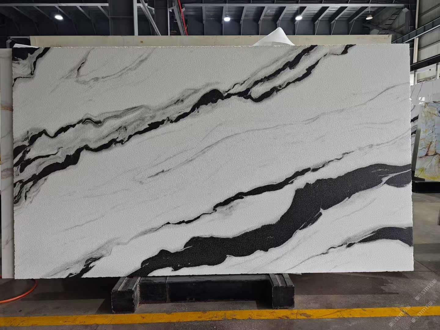 煜輝微晶石-熊貓白紋路板光面皮革面等加工面