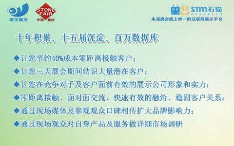 發(fā)布信息: 【2018第九屆重慶石材展5月在渝舉辦!】 主辦:重慶市工商聯(lián)(總商會(huì))建材商會(huì)、重慶建宇展覽有限公司 時(shí)間:2018年5月10-12日 地點(diǎn):重慶國(guó)際會(huì)議展覽中心 【往屆回顧】 上屆展會(huì)有來(lái)自國(guó)內(nèi)外近600余家知名企業(yè)和品牌參展,展示面積25000平方米,共接待了包括開(kāi)發(fā)商、建筑商、承包商、裝飾設(shè)計(jì)、代理商、經(jīng)銷(xiāo)商等專(zhuān)業(yè)人士近3萬(wàn)人次,被業(yè)界譽(yù)為中國(guó)西部地區(qū)專(zhuān)業(yè)性強(qiáng),參展效果的行業(yè)盛會(huì)之一!同時(shí)也得到了重慶市政府部門(mén)及行業(yè)主管部門(mén)的大力支持和指導(dǎo)。 【參展范圍】 石材類(lèi):大理石/花崗石/砂巖荒料、石灰石、板巖等 板材類(lèi):天然石材/大理石/花崗石板材、環(huán)境石材 人造石類(lèi):人造石英石、人造文化石、人造石板材 石雕制品類(lèi):石雕、石刻制品、園林風(fēng)景石、假山石等 環(huán)境裝飾類(lèi):卵石、仿古石、景觀(guān)石、磨菇石等 石材機(jī)械及加工設(shè)備:金剛石串珠鋸、研磨拋光設(shè)備、水射流切割機(jī)等 養(yǎng)護(hù)材料及設(shè)備:石材養(yǎng)護(hù)用品及設(shè)備、各類(lèi)石材清洗、研磨劑、石材拋光劑等 【為什么選擇-建宇·建博會(huì)—十年積累、十五屆沉淀、百萬(wàn)數(shù)據(jù)庫(kù)】 ?節(jié)約40%成本零距離接觸客戶(hù) ?三天展會(huì)期間結(jié)識(shí)大量潛在客戶(hù) ?在對(duì)手及客戶(hù)面前展示公司形象和實(shí)力 ?快速有效的融洽、穩(wěn)固客戶(hù)關(guān)系 ?通過(guò)現(xiàn)場(chǎng)媒體及觀(guān)眾口碑相傳擴(kuò)大品牌影響力 ?通過(guò)現(xiàn)場(chǎng)觀(guān)眾對(duì)產(chǎn)品及服務(wù)做詳細(xì)市場(chǎng)調(diào)研 【聯(lián)系方式】 單 位: 重慶建宇展覽有限公司 電 話(huà): 023-86376000/62925058 傳 真: 023-86376218 e-mail: jianyuzl@163.com 地 址: 重慶市南岸區(qū)南坪西路3號(hào)商業(yè)大樓29-4