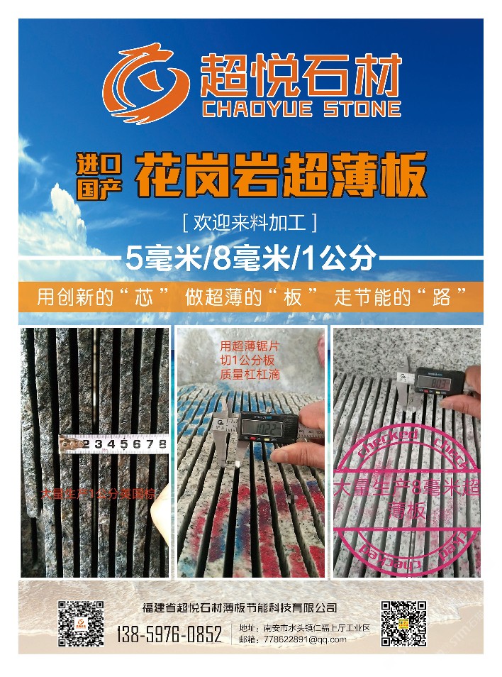 發(fā)布信息: 握手]我工廠采用超薄3.0鋸片大切專業(yè)對外來料精加工進口國產(chǎn)花崗巖。高出材率!為你降低成本,提升利潤空間! 財富密碼13859760852